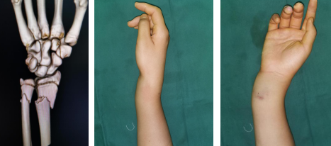 患儿一:安徽宿州的12岁男孩刘帅(化名)玩耍时不慎跌倒,摔伤右腕致畸形、活动受限,在当地医院拍片示右桡骨远端骨折,于是,家长带着孩子来到必威官方首页官网betway手外科就诊。