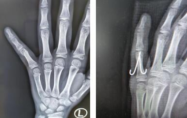 “潘医生,小孩儿打篮球抢球,把左手的小指给戳伤了,您快帮忙看看伤得严重吗?”接诊的是手外科四病区的潘勇医生,潘医生首先为小博进行了专科检查,拍片结果显示,其左小指近节指骨骨折。潘医生说:“伤得倒不是多严重,指骨骨折,需要做个小手术”。