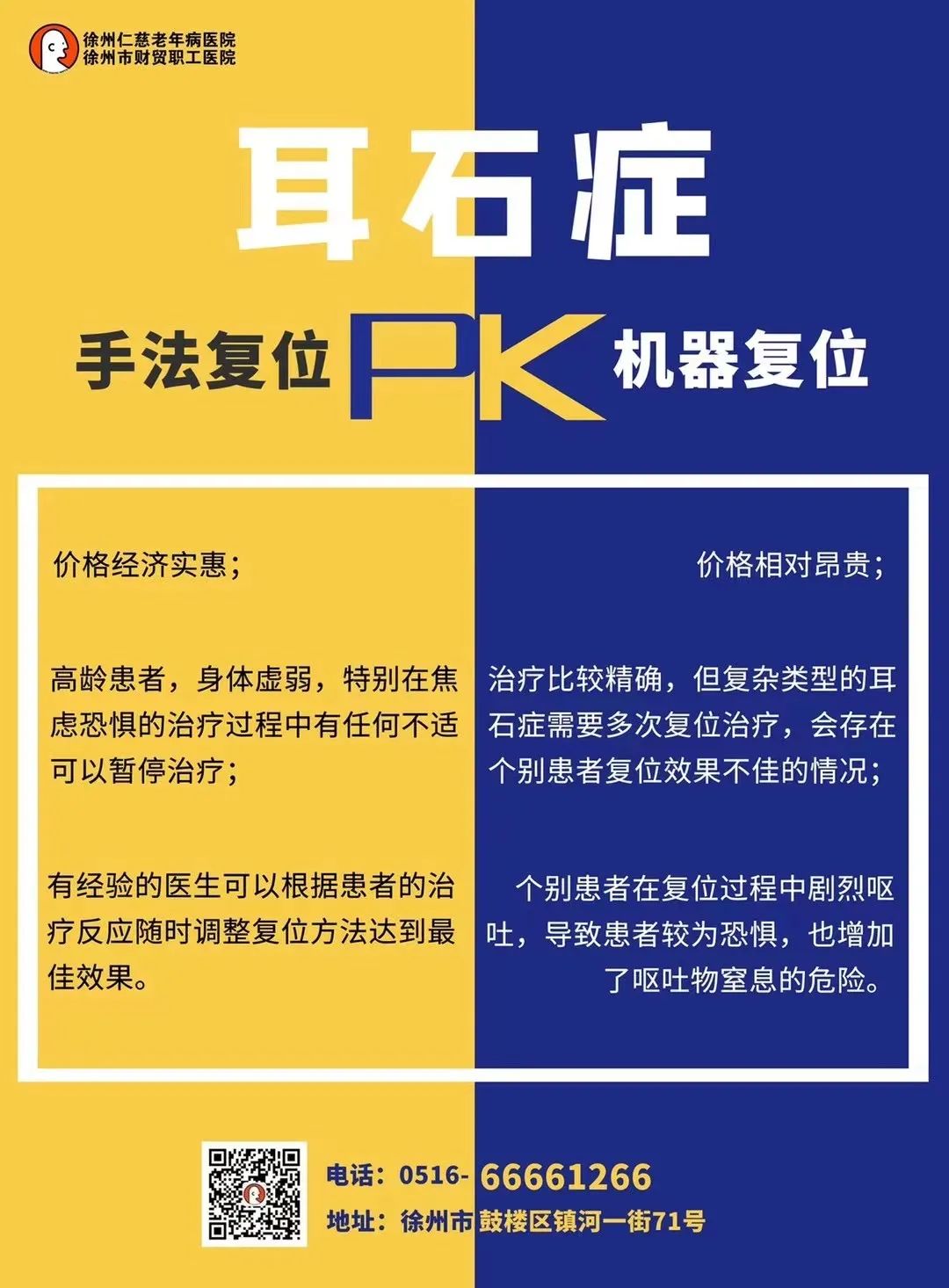 人工手法复位作为传统的复位方法,更多地依靠复位医生的经验和判断,对一些简单的耳石症患者,往往也可以获得好的复位效果。如有身体不适,请您到门诊接受医生诊断!