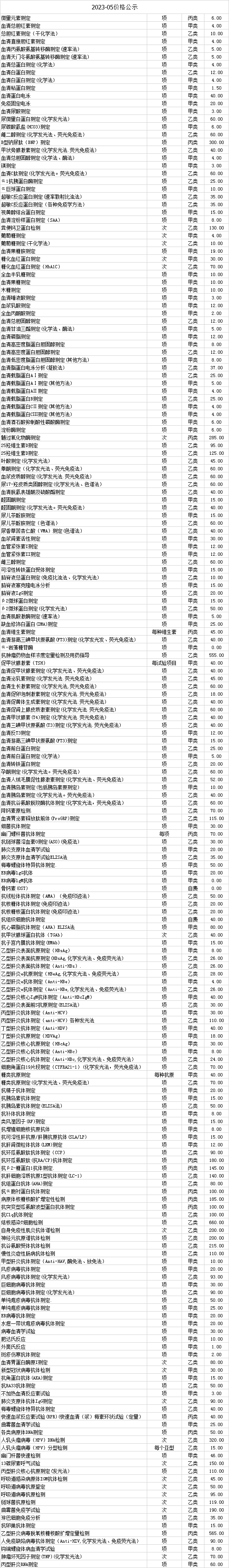 为规范医院的收费行为,医院所有药品、医用材料和医疗服务价格,必须按照国家、省、市物价部门规定的价格执行,并进行公示,2023年5月价格公示内容如下: