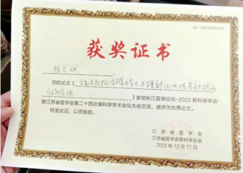 此次2023骨科学年会上,捷报喜传,在已评选出的表彰中,betway在线登陆陈占斌的《植皮预构皮瓣修复足踝部皮肤脱套缺损的临床应用》,被评选为“优秀论文”。