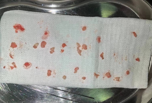 术中情况以及取出的肿瘤组织