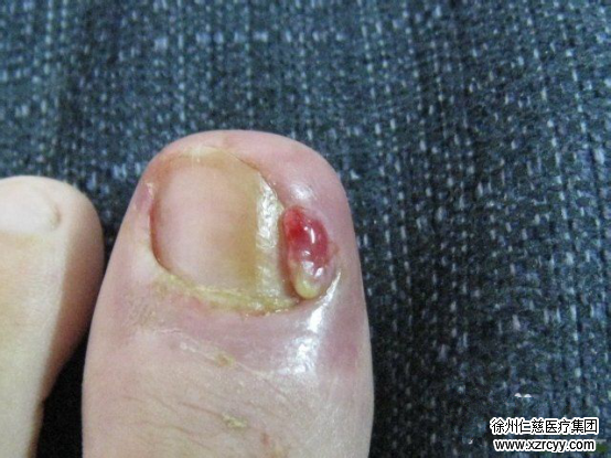 4、化脓。进一步发展后的甲沟炎症状则化脓,脓液自一侧甲沟经甲根部皮下蔓延到对侧甲沟形成半环形脓肿。