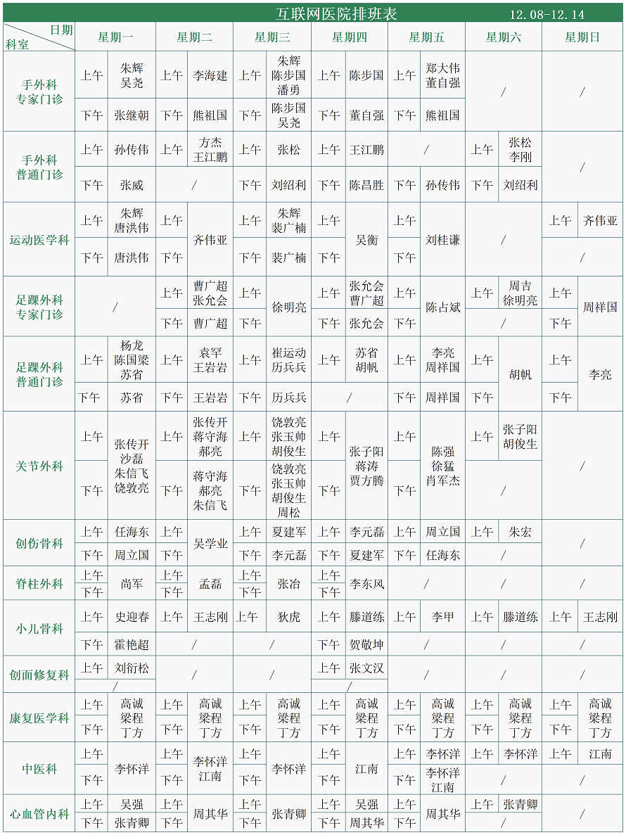 注:专家门诊安排如有临时变动,以院方当日公布为准。
